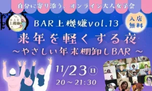 【年末女子会】BAR上機嫌 vol.13 子どものことで心がいっぱいのママへ、心を休める時間11/23(日)