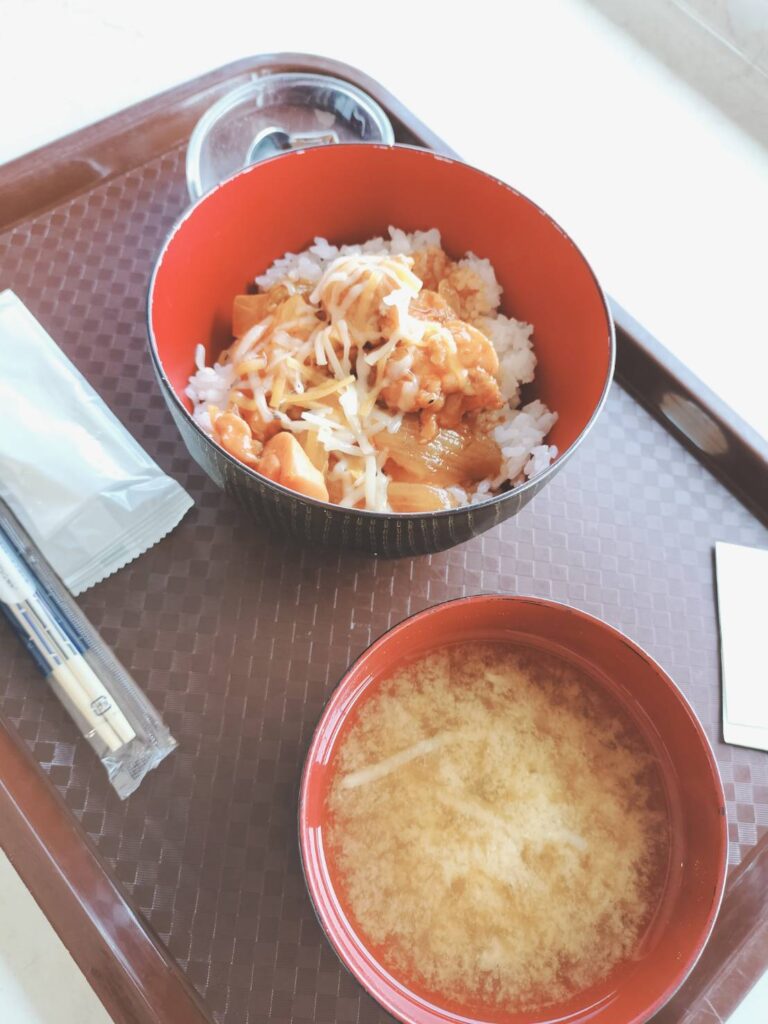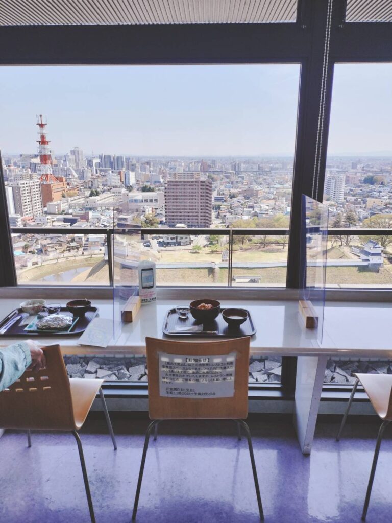 市役所の上でごはん食べて。